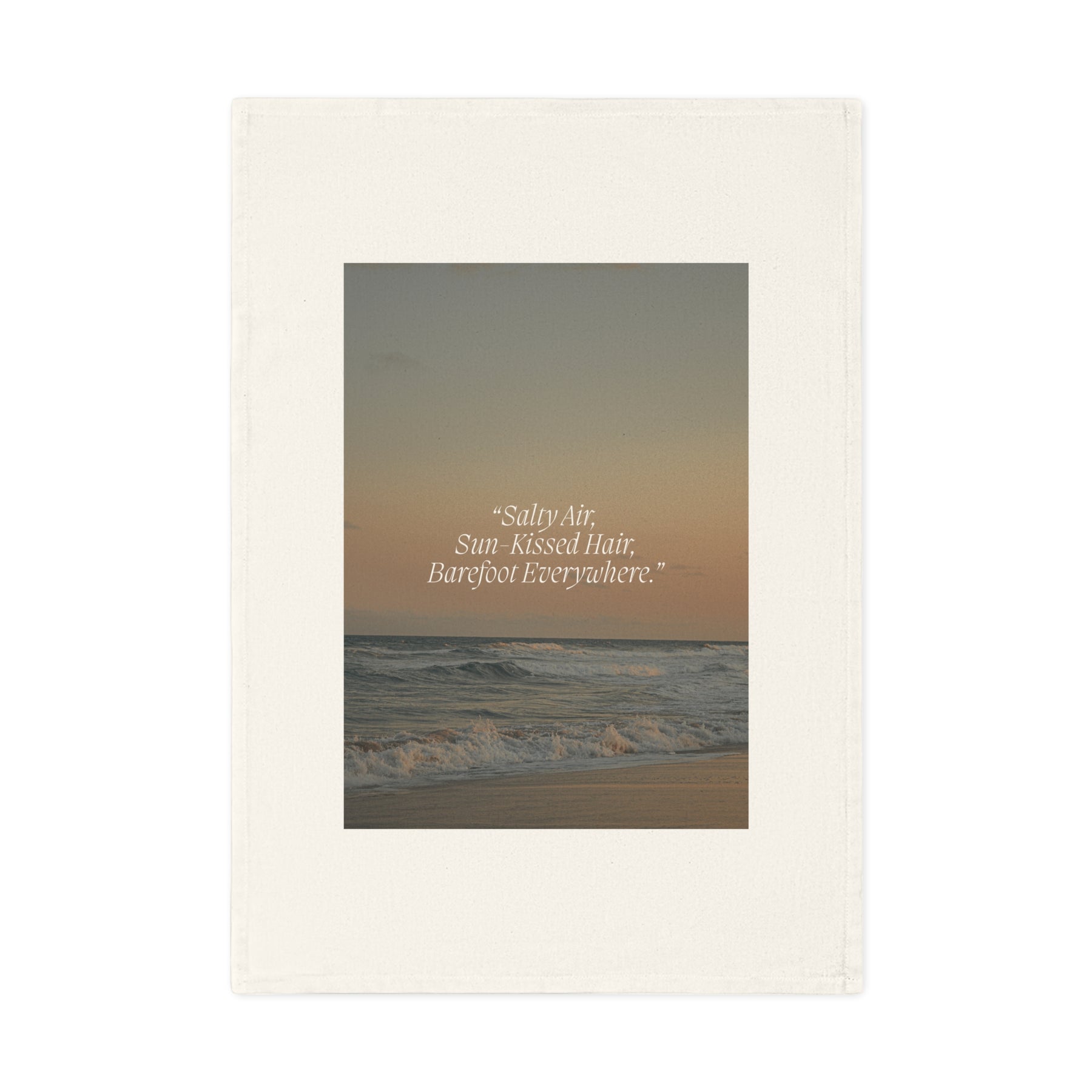 Salty air sun kissed hair barefoot everywhere organic cotton tea towel for beach lovers and coastal homes